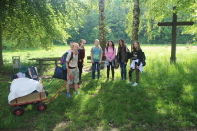 2017 Einzelversprechen im Garten / Vorfertigung des großen Kreuzes für die Aktionswiese