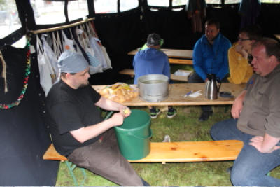 erforderliche Lagerausrüstung verladen. Eine Vorhut startete danach Richtung Immenhausen und stellte schon einmal die Jurten und ein Rundzelt auf. Am