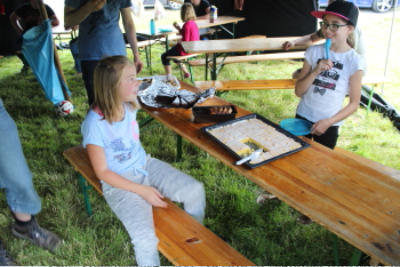 jungen Helfern in der Küche, die für ihre Bewertung die volle Punktzahl erhielten. Das Wetter war angenehm warm und trocken, ein kleiner Regenguss am